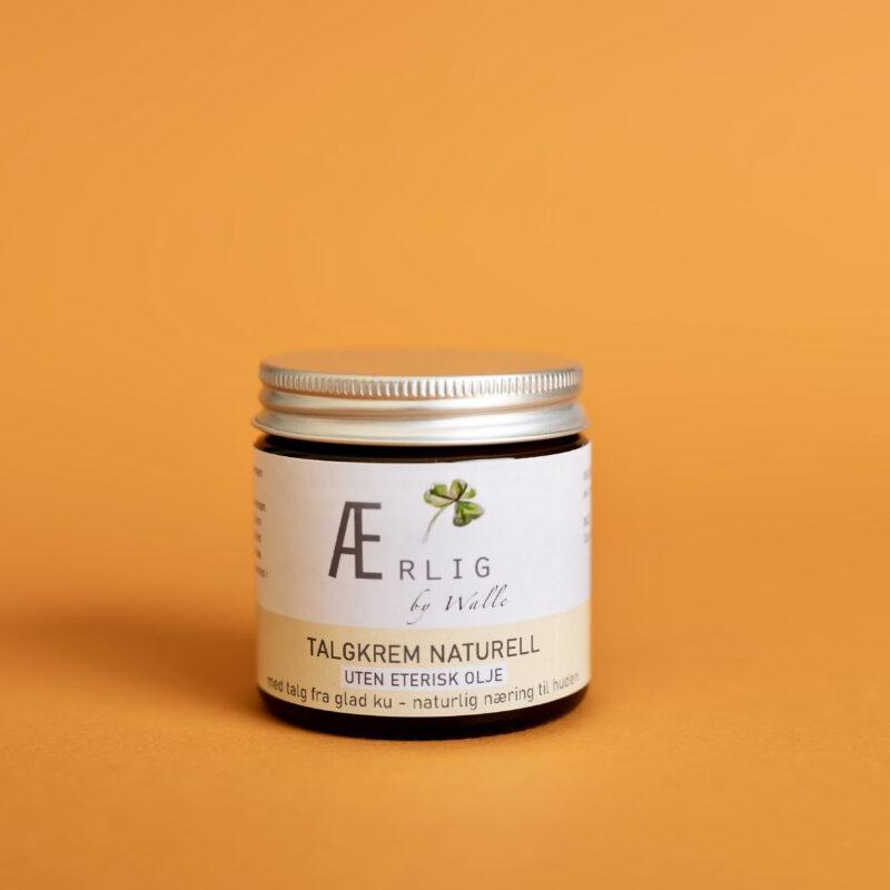 - Ærlig by Walle sin Talgkrem Naturell er en ekstremt ren og mild talgbasert salve, med kun to ingredienser: talg fra 100 % gressforet norsk storfe og økologisk MCT‑olje.