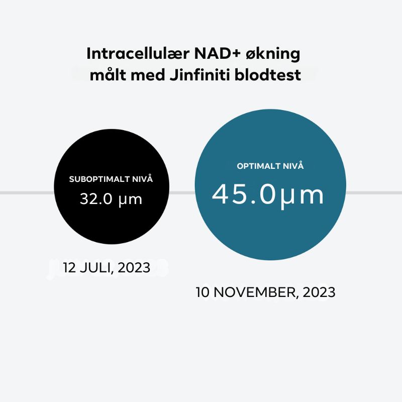 - Høyere NAD+-nivåer er knyttet til lang levetid og redusert aldersrelatert tilbakegang.