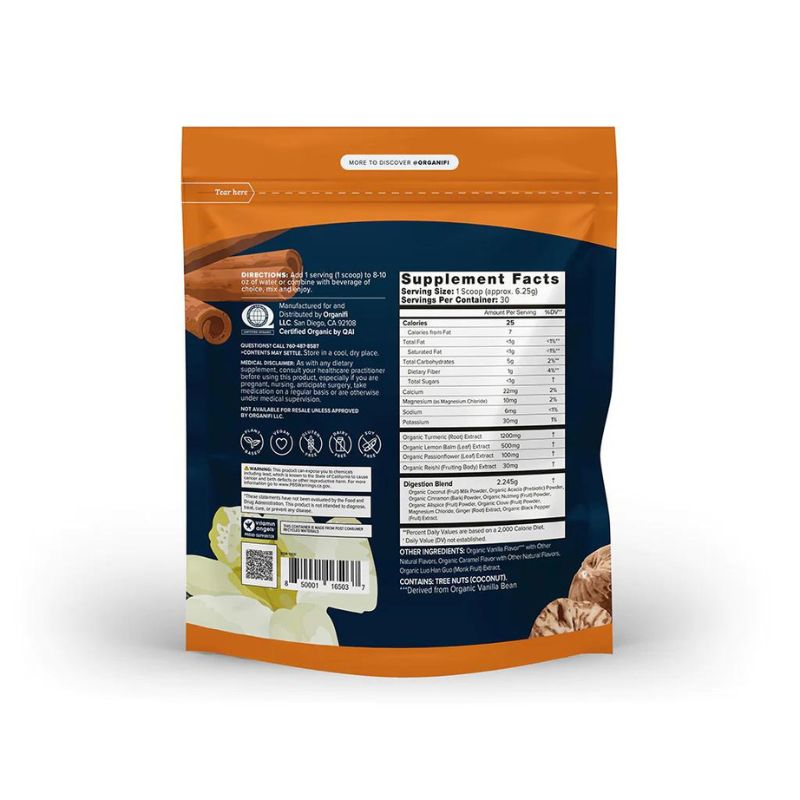 | Digestion Blend (Økologisk kokosnøtt (frukt) melkepulver, økologisk akasie (prebiotisk) pulver, økologisk kanel (bark) pulver, økologisk (frukt) muskatnøtt pulver, økologisk allehånde (frukt) pulver, økologisk kløver (frukt) pulver, magnesiumklorid, økologisk ingefær (rot) ekstrakt, økologisk sort pepper (frukt) ekstrakt.) |