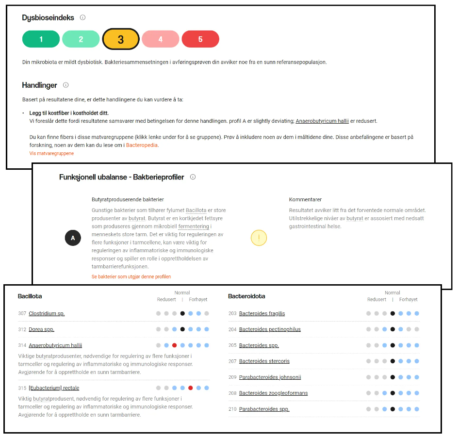 - Motta dine resultater online og få skreddersydde anbefalinger for bedre tarmhelse.
